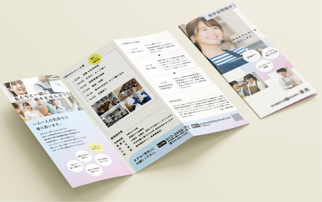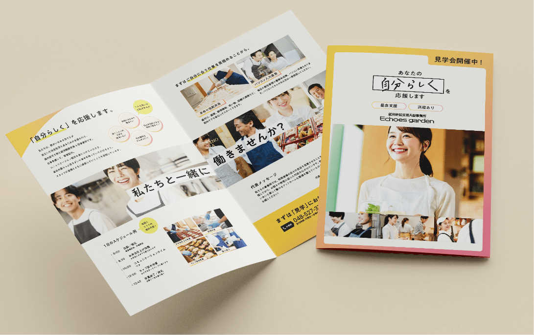 利用者募集や生産活動の募集など、事業所の良いところを引き出し、告知することで保護者様や利用検討中の方からの好印象獲得に繋げます。